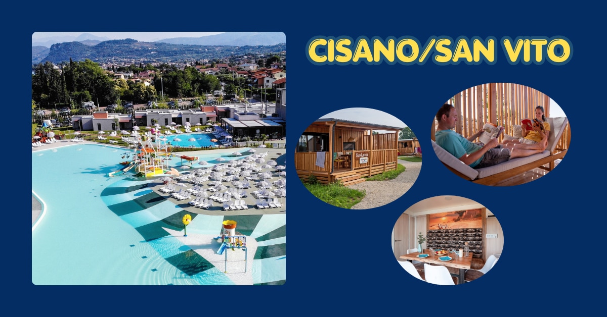 Camping Cisano/San Vito ligger mellem Bardolino og Lazise direkte ved Gardasøen.