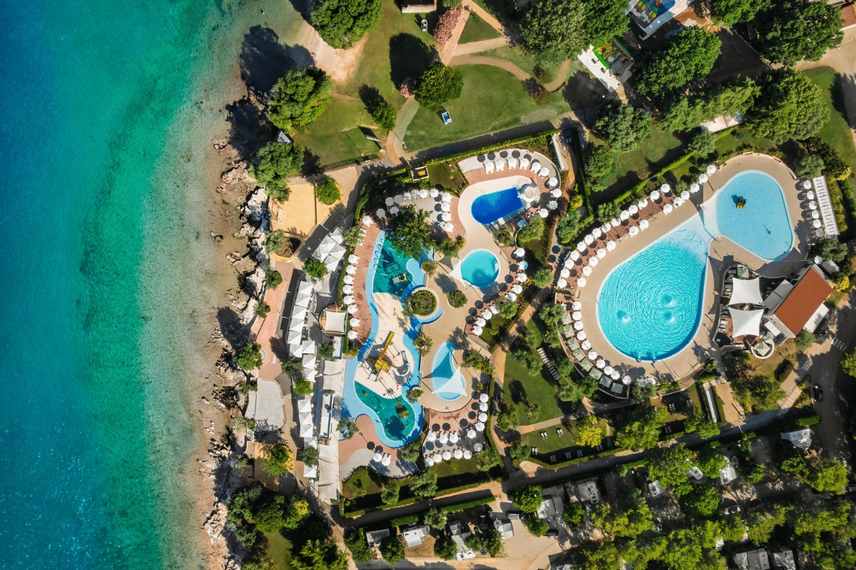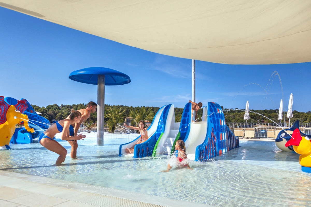 En af de mest populære familiecampingpladser i Kroatien. Det enorme vandland på 6.500 m² med piratskibe, springvand og børnebassiner er et kæmpe hit blandt de 3–6-årige.