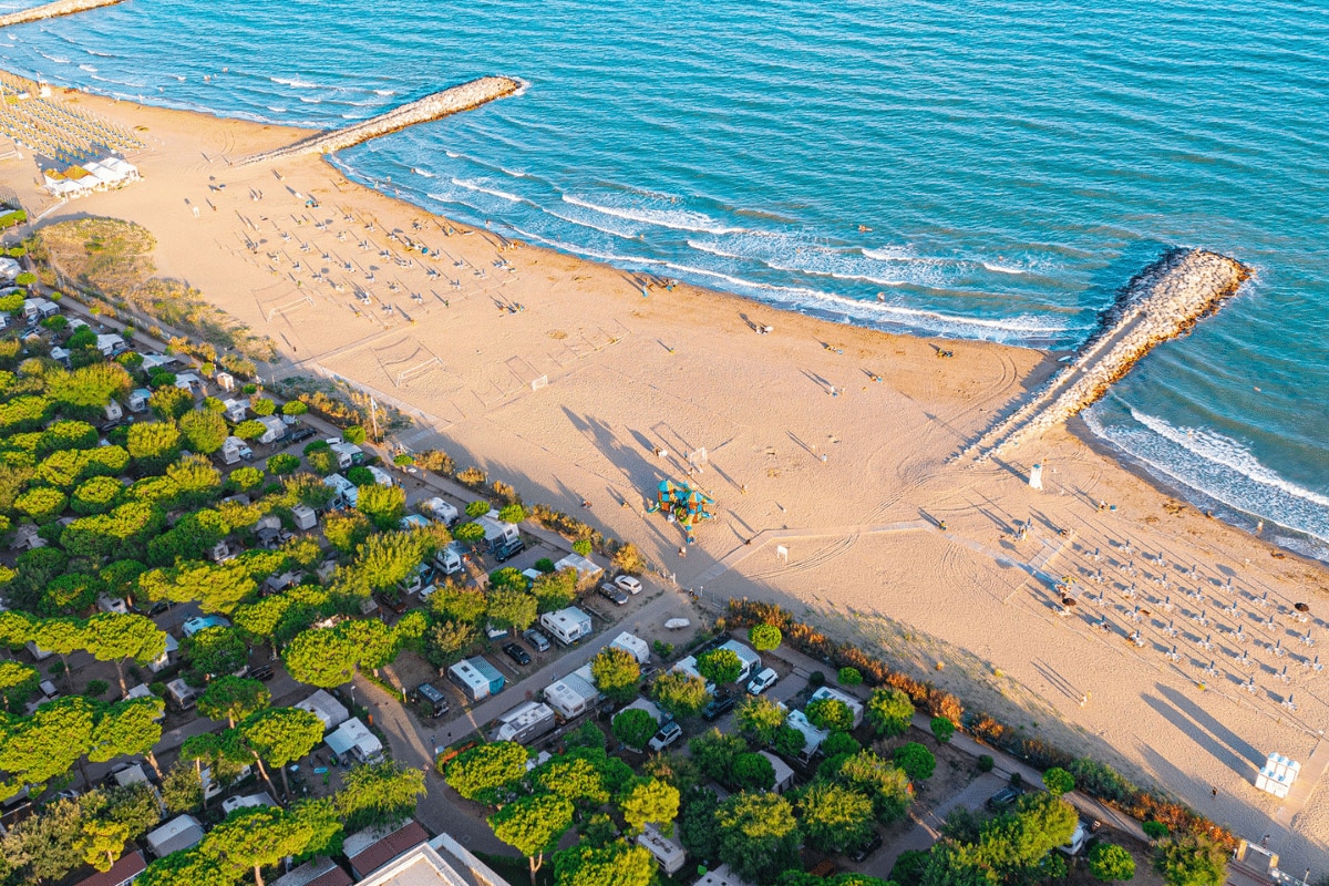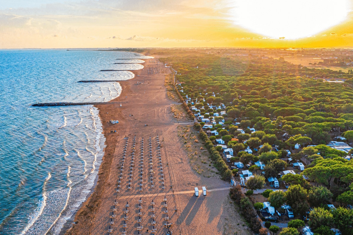 Kyststrækningen omkring Veneto og det nordlige Adriaterhav er kendt for brede sandstrande og lavvandede områder, som gør strandlivet trygt og behageligt for selv små børn. De fleste campingpladser har deres egen strandafdeling med solsenge, lifeguards og vandaktiviteter.