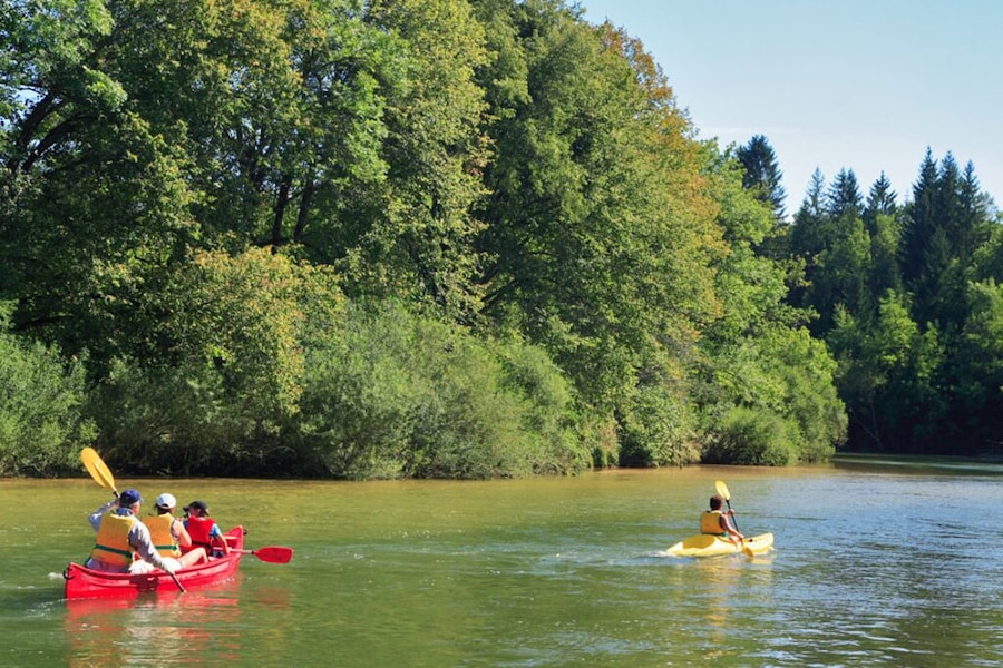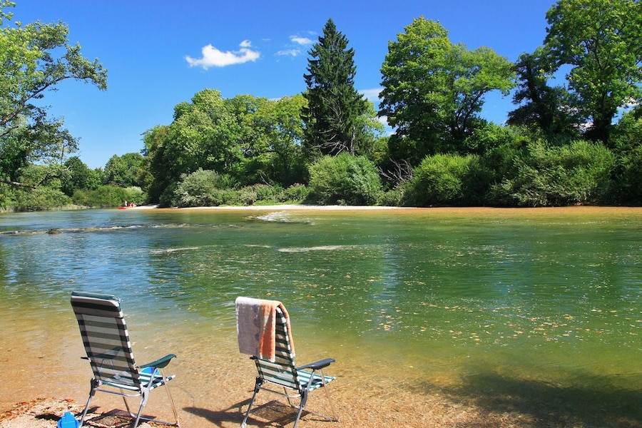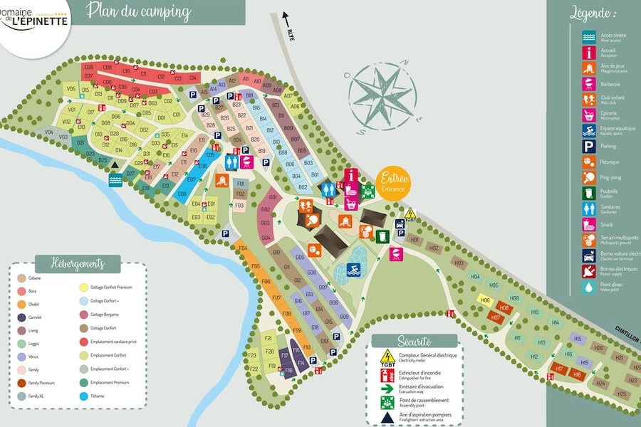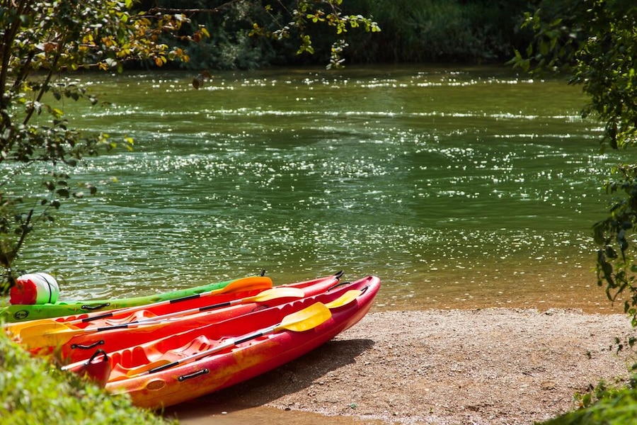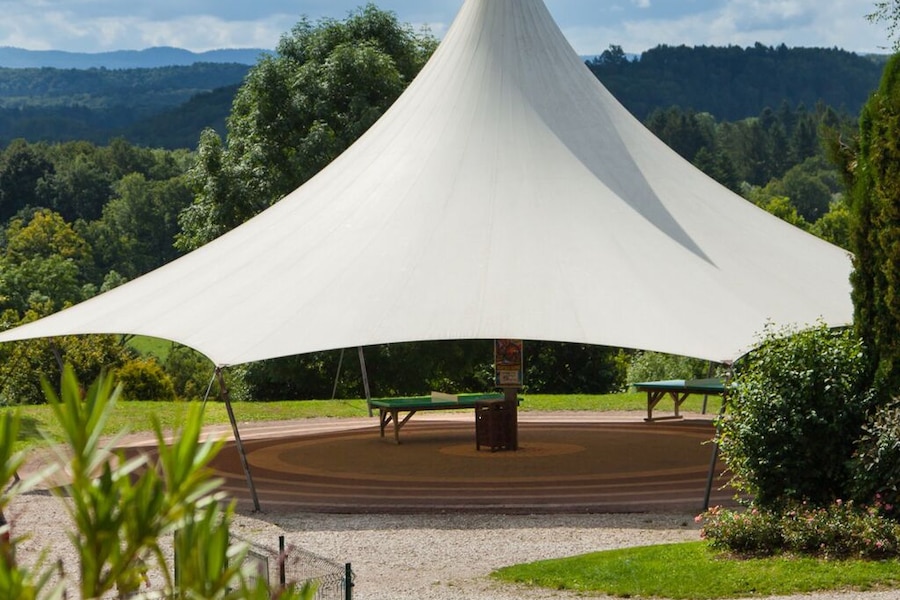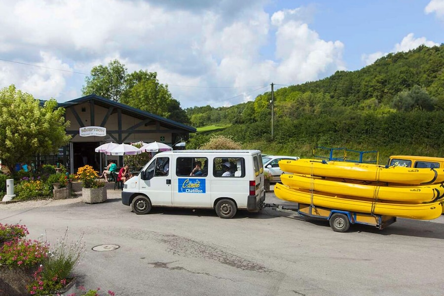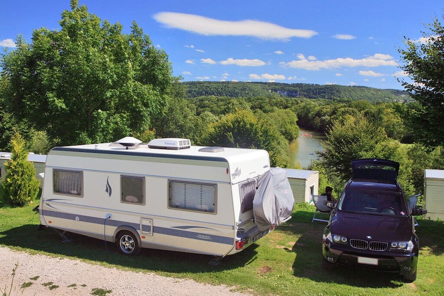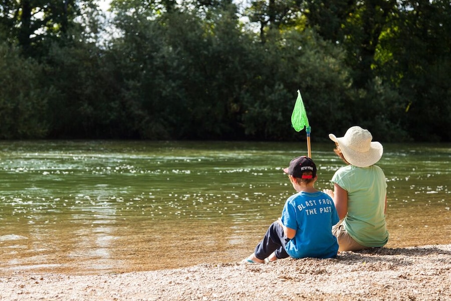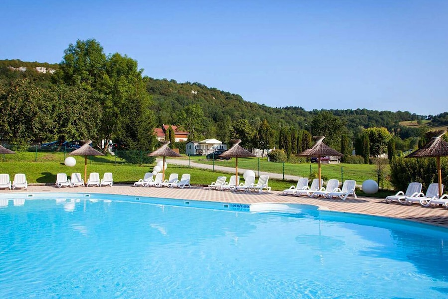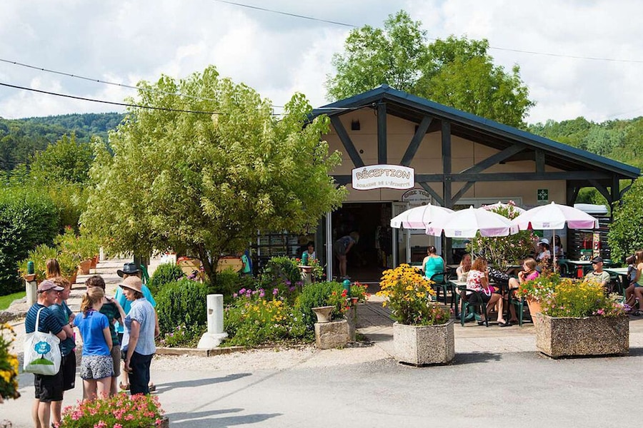 På campingpladsen Domaine de l'Épinette er du heldig. Du er på ferie i det franske Jura, på en campingplads lige ved en flod med gode muligheder for at sejle i kano (kanoer kan lejes) og svømme.