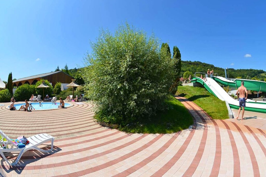Rustige camping, afgelegen aan een boerenweg. Mooi gelegen aan een rivier. Weinig animatie voor grote kinderen en volwassenen. Gehuurde chalet was erg mooi en goed uitgerust met vaatwasser. Zwembad te klein als het in het hoogseizoen druk is. Toegang tot de rivier is minimaal. Kan er niet liggen.
