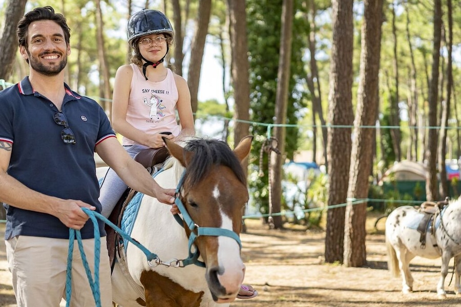 Campingpladsen i La Barre-de-Monts ligger i et skovområde. Grunden er stor og har fyrretræer, som giver masser af skygge. Den har en åben og venlig atmosfære. Lige bag klitterne kommer du til stranden ved Fromentine. Du kommer til at bo lige ved havet, så tag dit badetøj med! Der er også en opvarmet swimmingpool og en børnepool og et solbadningsområde på campingpladsen, så du kan få en dejlig svømmetur i solen.