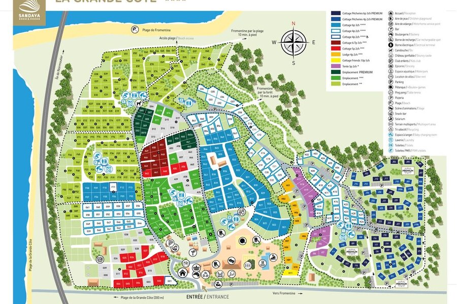 Det er tid til en ferie i Vendée! Denne franske campingplads ligger mellem klitterne og stranden. Du kommer til at bo ved siden af landsbyen Fromentine. Camping Sandaya La Grande Côte lover dig en ferie fuld af sol, hav og sand, men også af saltsøer, muslinger og østers. Du får den ultimative strandferie her på Frankrigs vestkyst.
