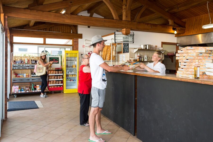 - Campingbutik/supermarked i stueetage eller tilgængelig via skrånende overflade til kørestol