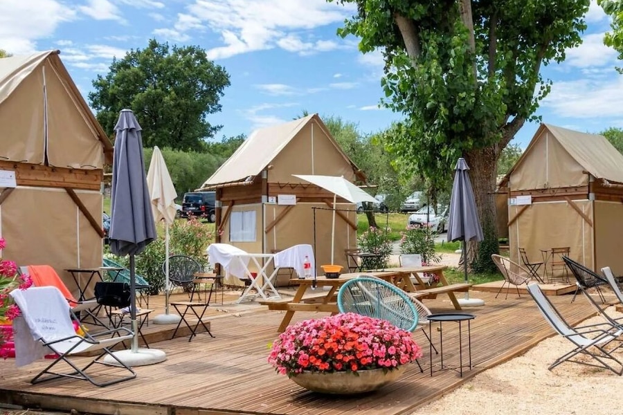 An unusual feature of this campsite is the lovely combination of attractive glamping accommodation and camping pitches under the many olive and pine trees. Plenty of thought has been given to the furnishing of the glamping tents. The Coco Suite is the biggest eye-catcher of them all. A view of the lake is the first thing you will see from some of the pitches when you open your eyes in the morning. If you want even more luxury, rent one of the modern apartments which are positioned in the middle of this lovely campsite.Drive through spectacular gorges