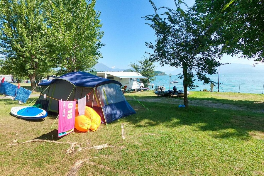 A neat campsite where those seeking rest can stay overnight in style right next to the shores of Lake Garda. You will experience a wonderfully relaxing holiday on a beautiful pebble beach, and you have lovely views of the bay and mountains of Lake Garda from Sivinos Camping Boutique. You can access the crystal clear water directly from the site and go swimming, use a stand up paddle or sail a boat. Many types of Italian treats are on the menu at the pleasant beach bar and restaurant.
