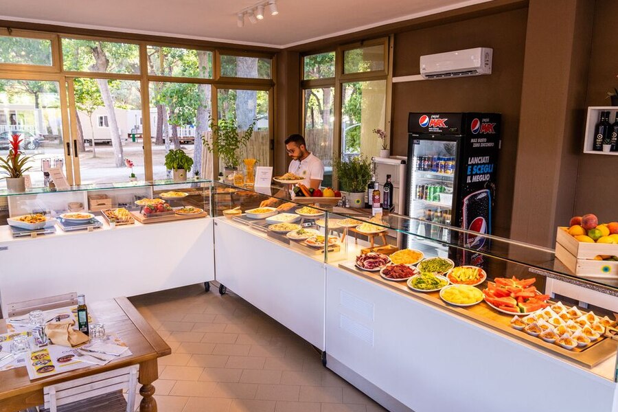 - Campingbutik/supermarked i stueetage eller tilgængelig via skrånende overflade til kørestol