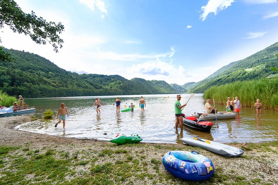 Med en så dejlig vandtemperatur er det en sand fornøjelse at tage en dukkert i en af søerne. 2 Laghi Camping har sin egen græsklædte strand ved vandet, så du kan gå direkte i vandet fra campingpladsen. Levico-søen har siden 2015 haft det Blå Flag, som er en garanti for, at vandet er rent og sikkert. Hunde er velkomne, så længe de holdes i snor. Hvis du foretrækker en sandstrand som dem ved havet, skal du tage til Caldonazzo-søen. Den ligger kun få minutter væk, og vandtemperaturen er lige så dejlig. Vil du stadig gerne have en swimmingpool? Campingpladsen har tre af dem; til dig og dine børn.