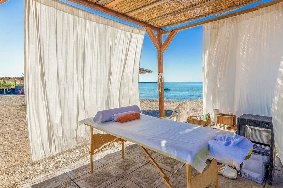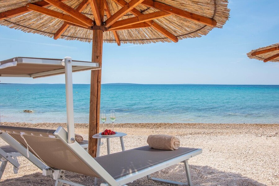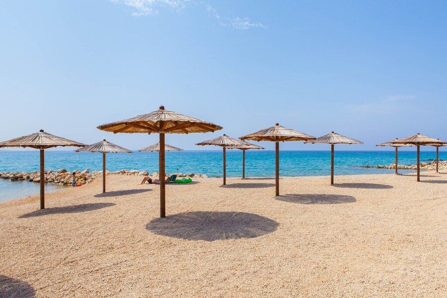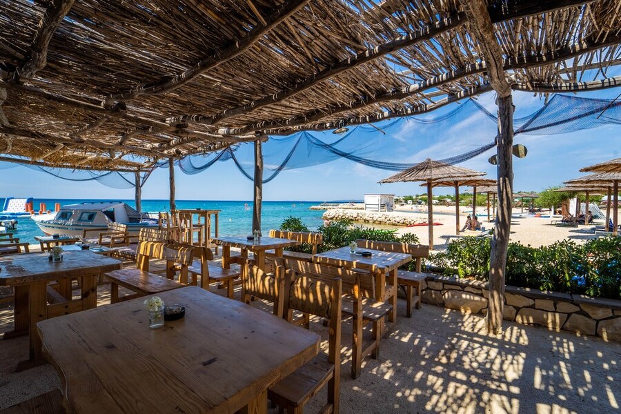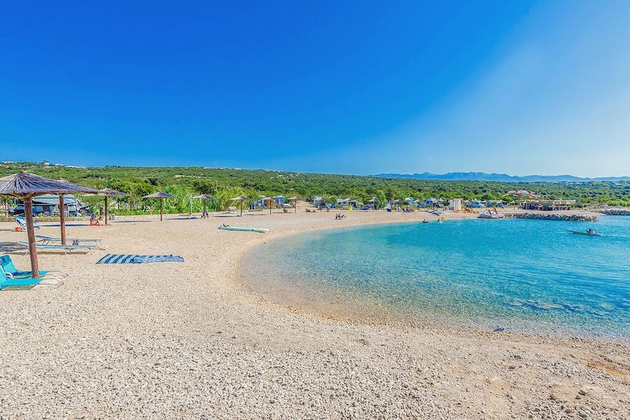 Pag er kendt for sine mange solskinstimer, og dem kan du nyde i fulde drag på stranden på Terra Park Phalaris. Heldigvis er der også masser af palmeparasoller til at give dig lidt skygge. Stranden består af småsten, så sørg for at medbringe et solidt underlag eller brug en af liggestolene. Havet er lavt et langt stykke ude, så det er et godt sted for børn at nyde vandet.
